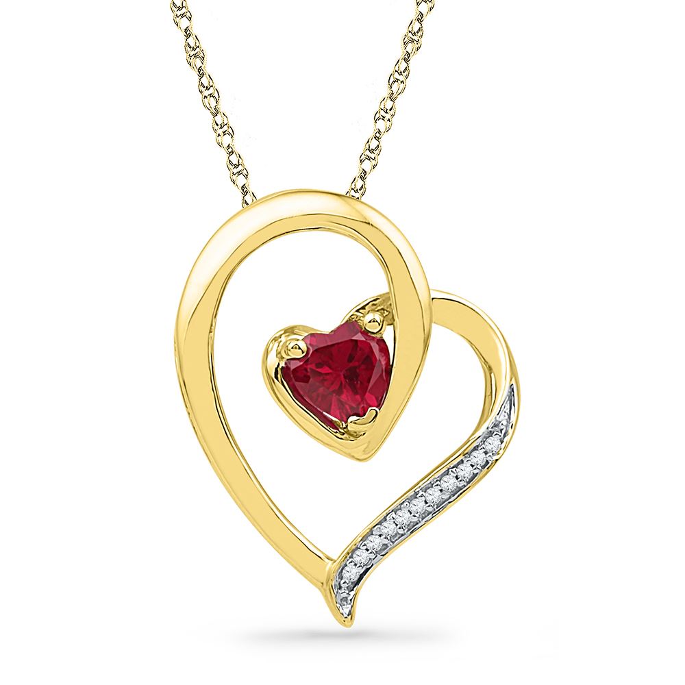 REF-10N5F- SKU: GD101359 ---- 0.03 CTW Created Ruby Heart Love Pendant 10KT Yellow Gold