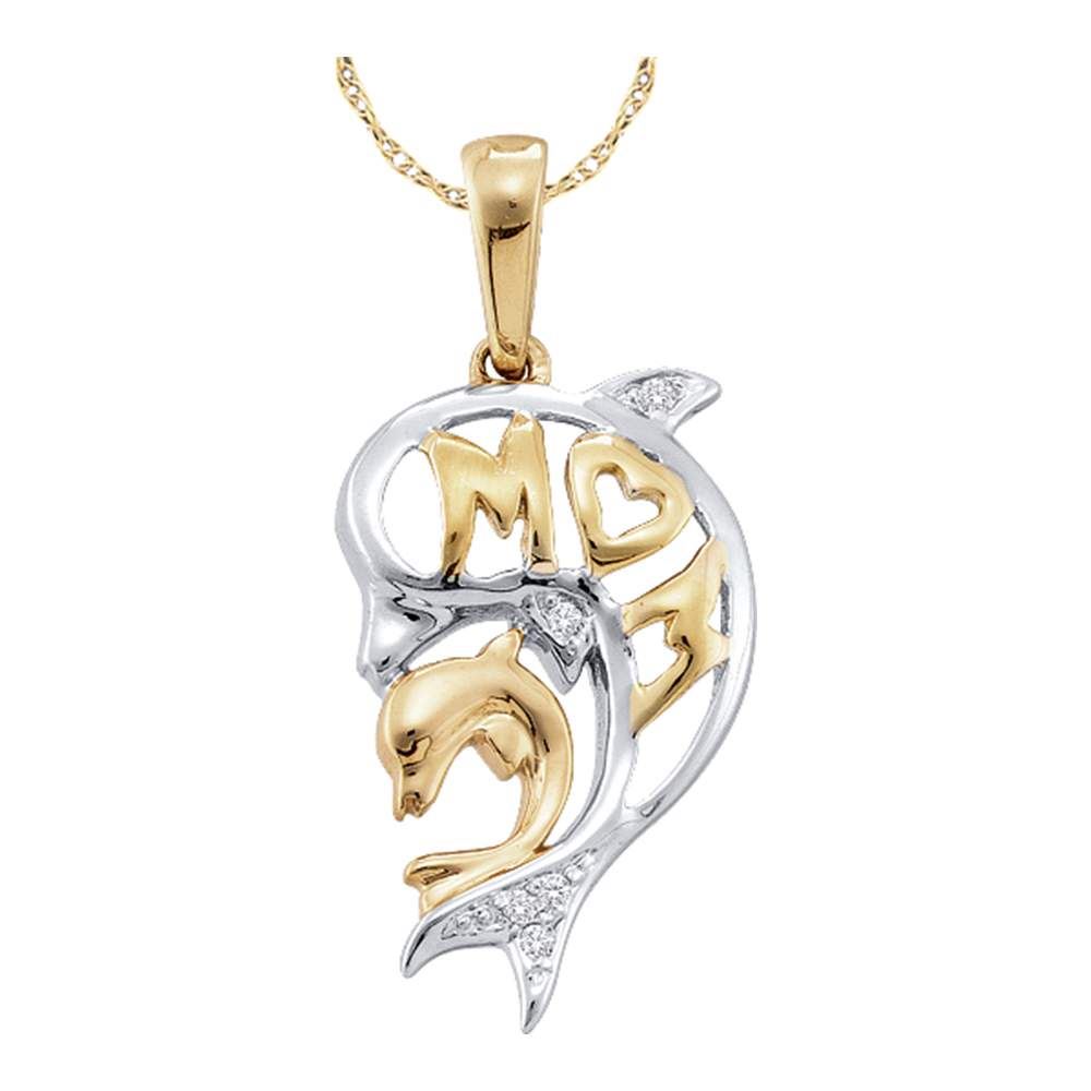 REF-10K5W- SKU: GD52286 ---- 0.03 CTW Diamond Double Dolphin Mom Pendant 10KT Two-tone Gold