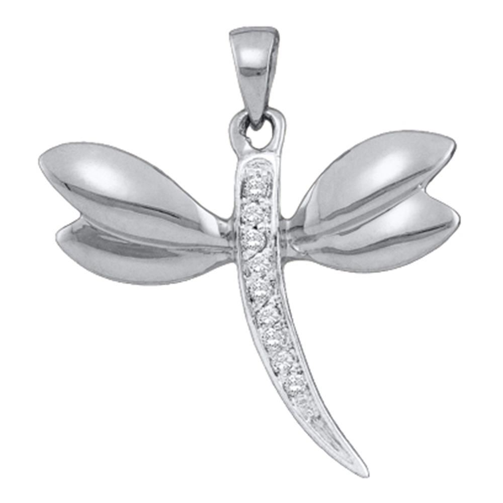 REF-7Y4X- SKU: GD39640 ---- 0.03 CTW Diamond Dragonfly Winged Bug Insect Charm Pendant 10KT White Gold