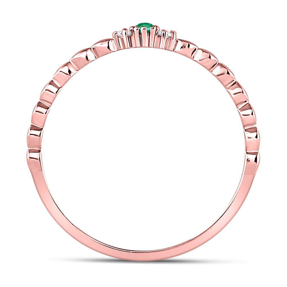 10kt Rose Gold Womens Round Emerald Solitaire Diamond-accent Stackable Ring .03 Cttw