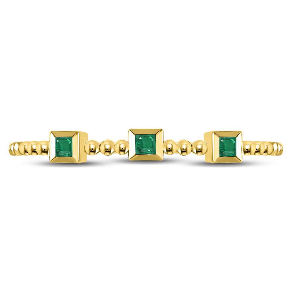 REF-5M9A ---- 0.03 CTW Princess Emerald Beaded 3-stone Stackable Ring 10kt Yellow Gold