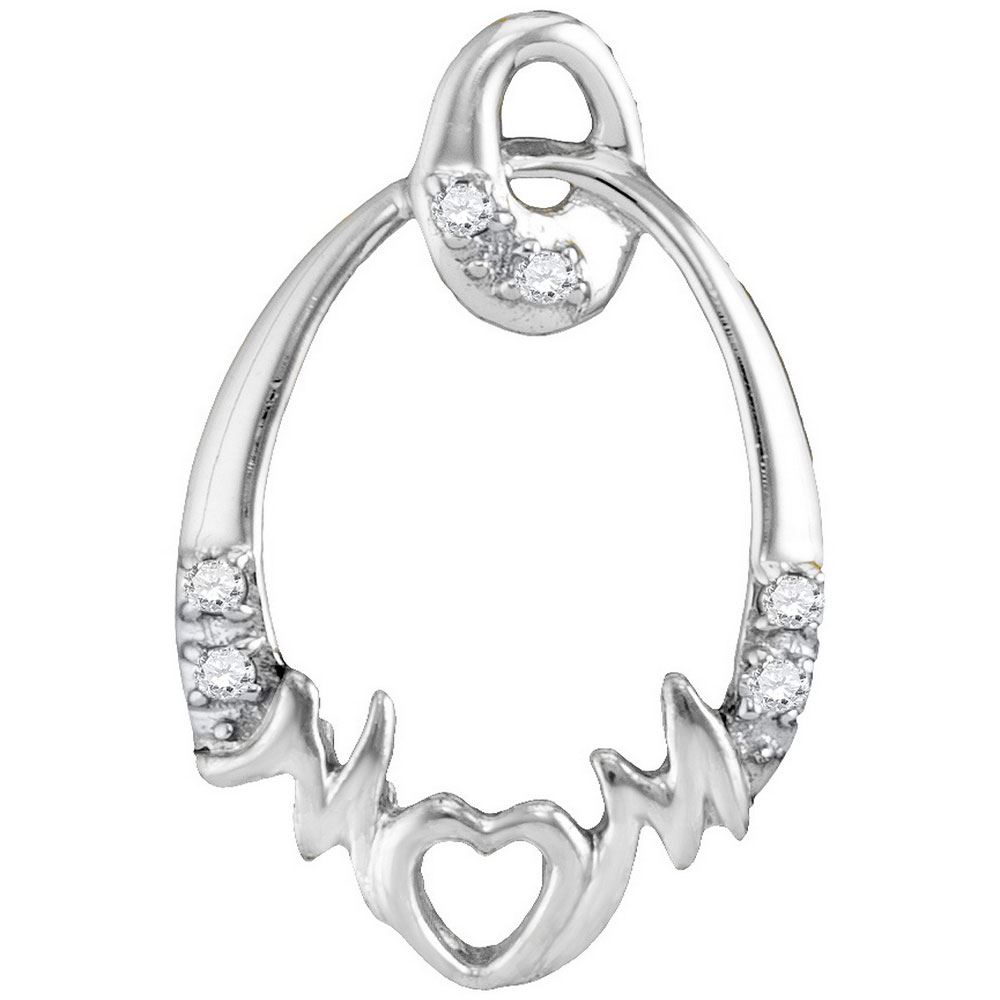 REF-7M5A ---- 0.03 CTW Round Diamond Mom Mother Oval Heart Pendant 14kt White Gold