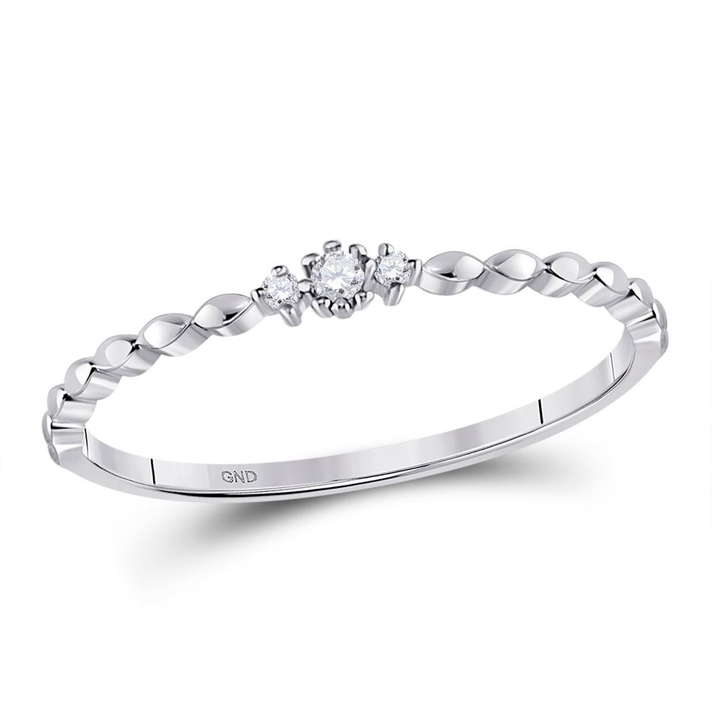 REF-8T3V - 0.03 CTW Womens Round Diamond Stackable Band Ring 10kt White Gold - REF-8T3V