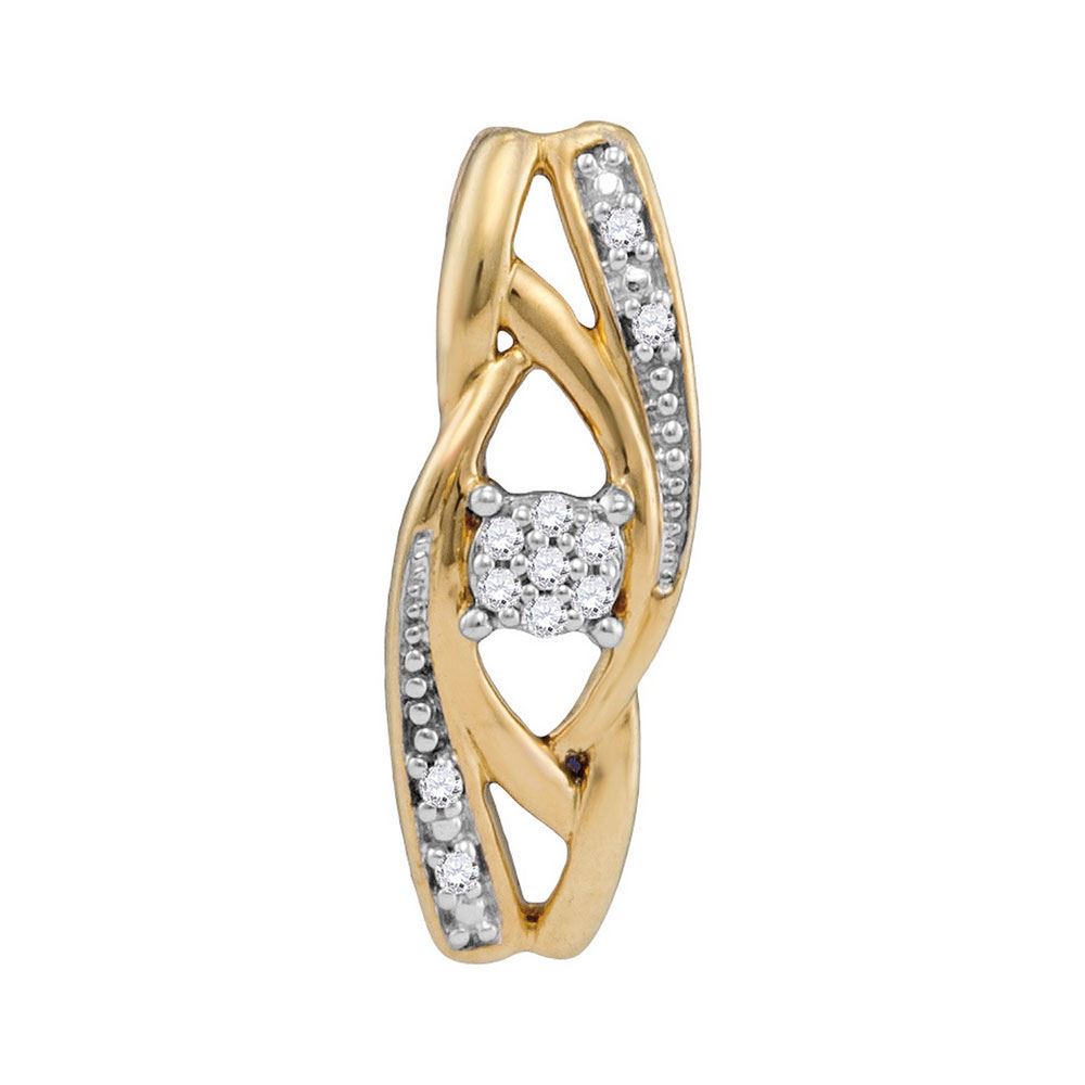 REF-6X7T - 0.03 CTW Womens Round Diamond Vertical Suspended Cluster Pendant 10kt Yellow Gold - REF-6X7T