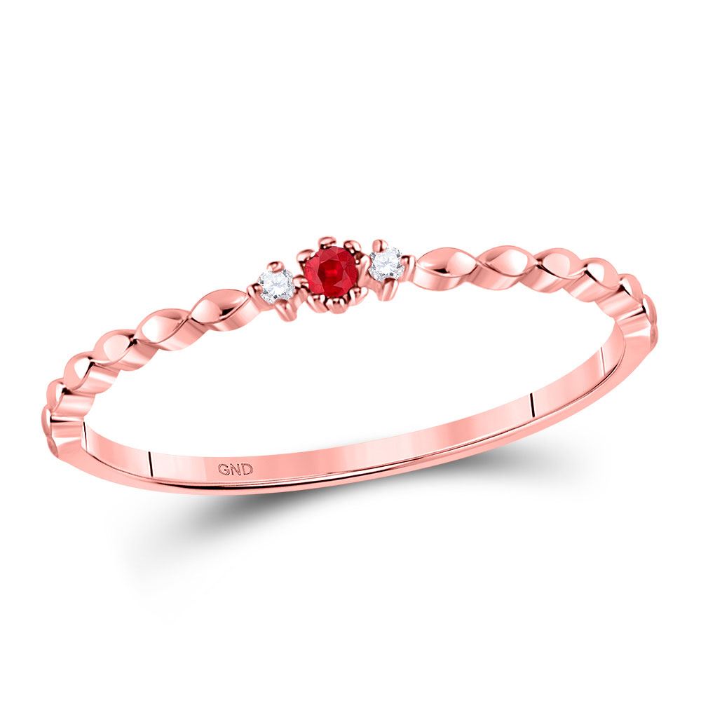 REF-8M3F - 0.03 CTW Womens Round Ruby Diamond Stackable Band Ring 10kt Rose Gold - REF-8M3F
