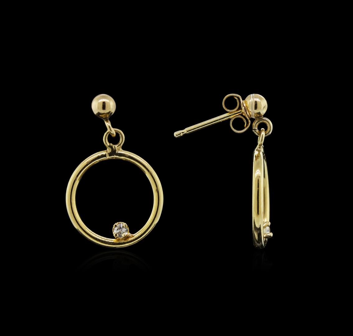 One pair of earrings featuring: 14KT yellow gold weighing 0.87 grams containing two prong set round diamonds with a total weight of 0.03ct.