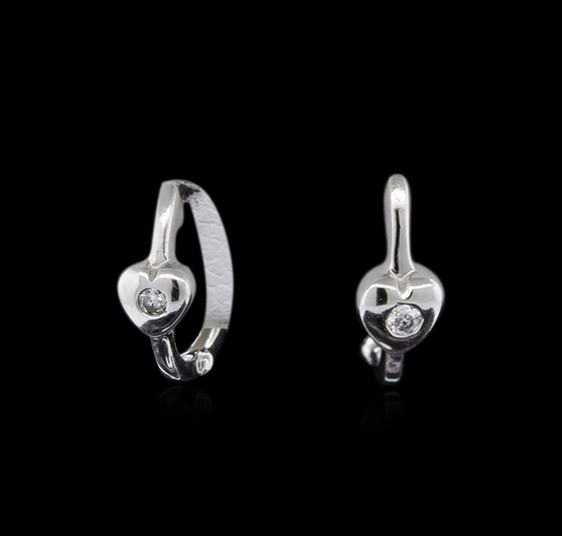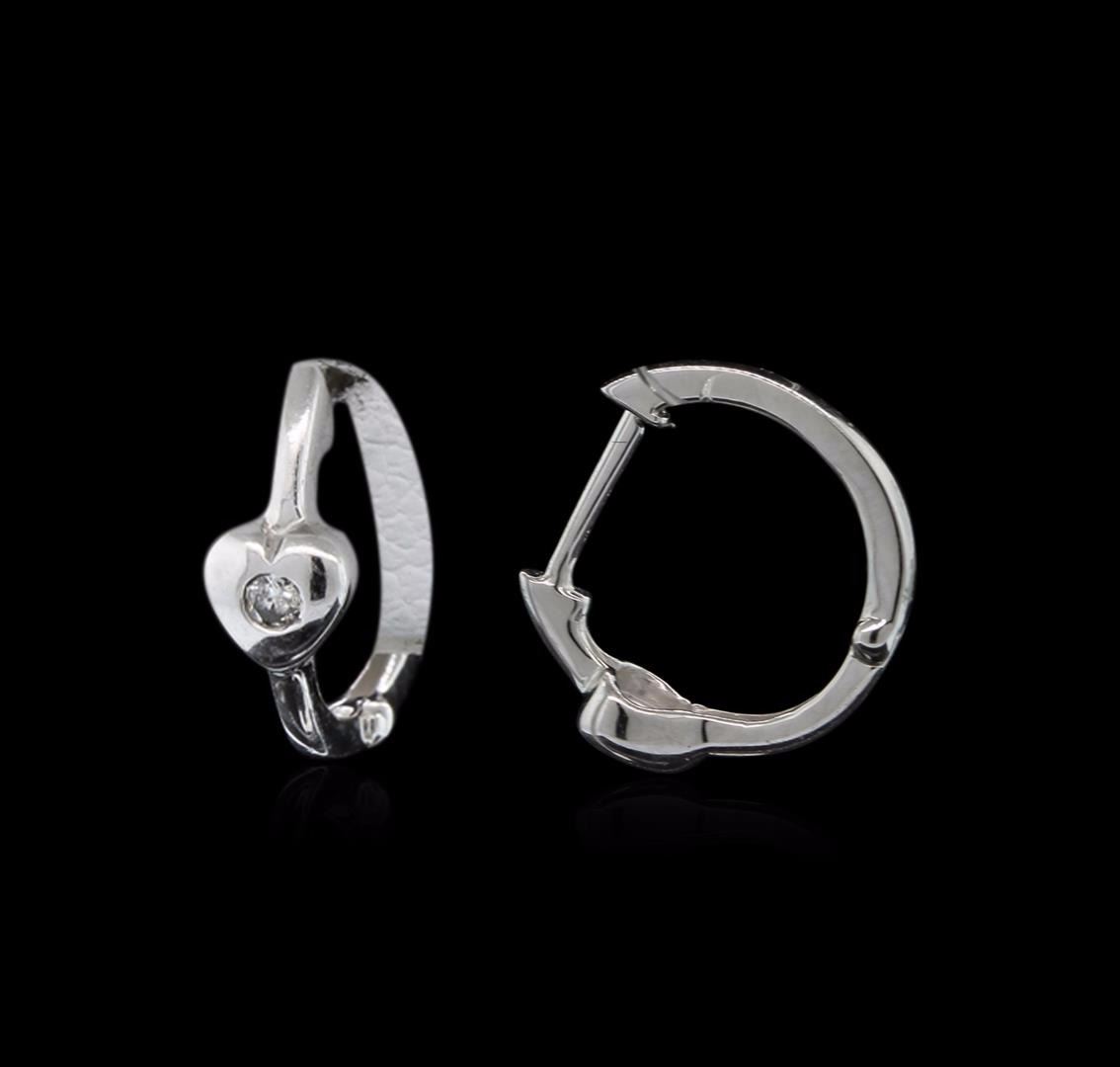 One pair of tiny hoop earrings featuring: 14KT white gold weighing 1.29 grams containing bezel set round diamonds with a total weight of 0.03ct.
