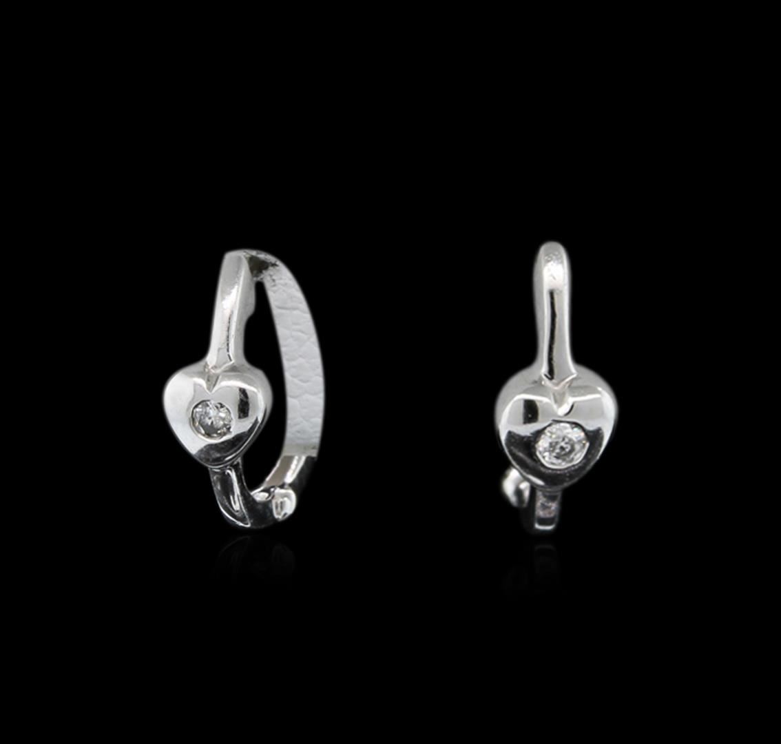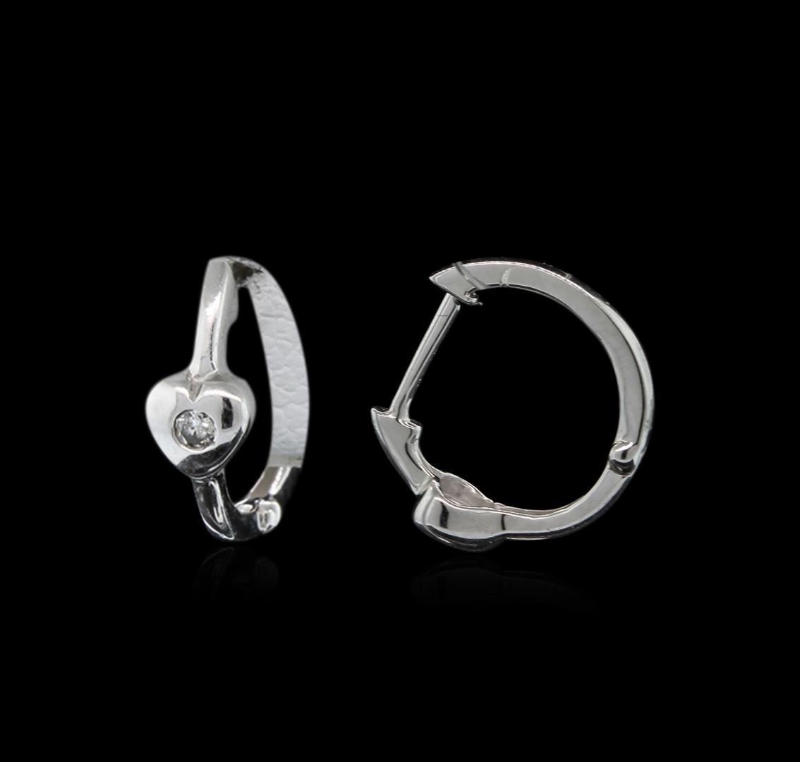One pair of tiny hoop earrings featuring: 14KT white gold weighing 1.33 grams containing bezel set round diamonds with a total weight of 0.03ct.