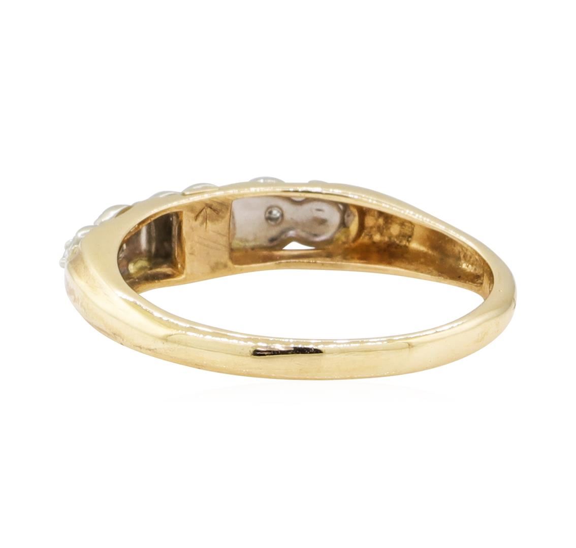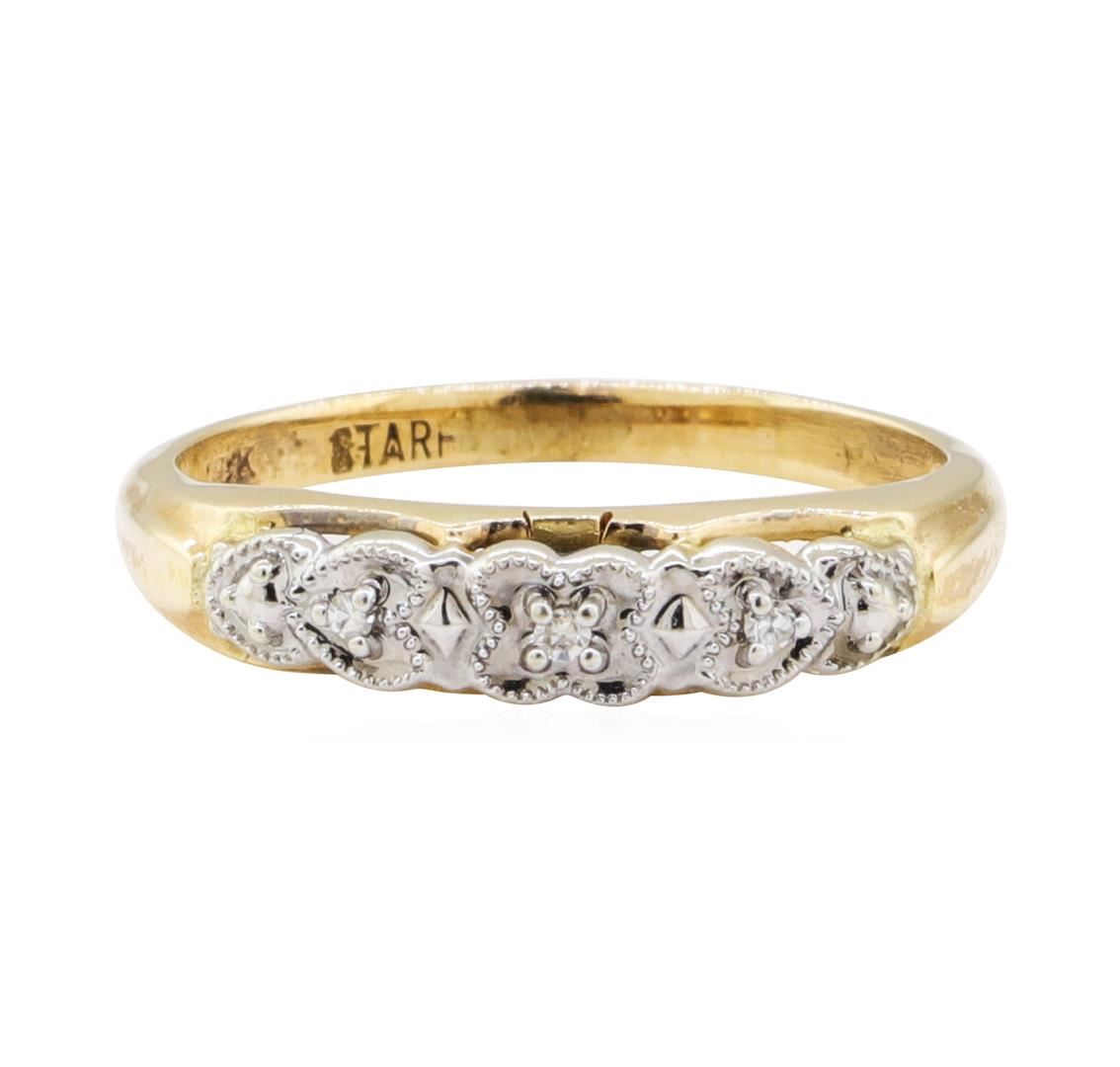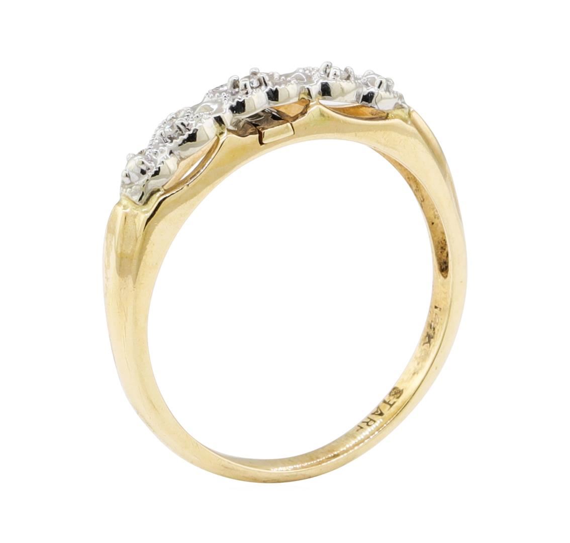 One ring featuring: 14KT yellow and white gold weighing 1.6 grams containing diamonds weighing 0.03ctw.