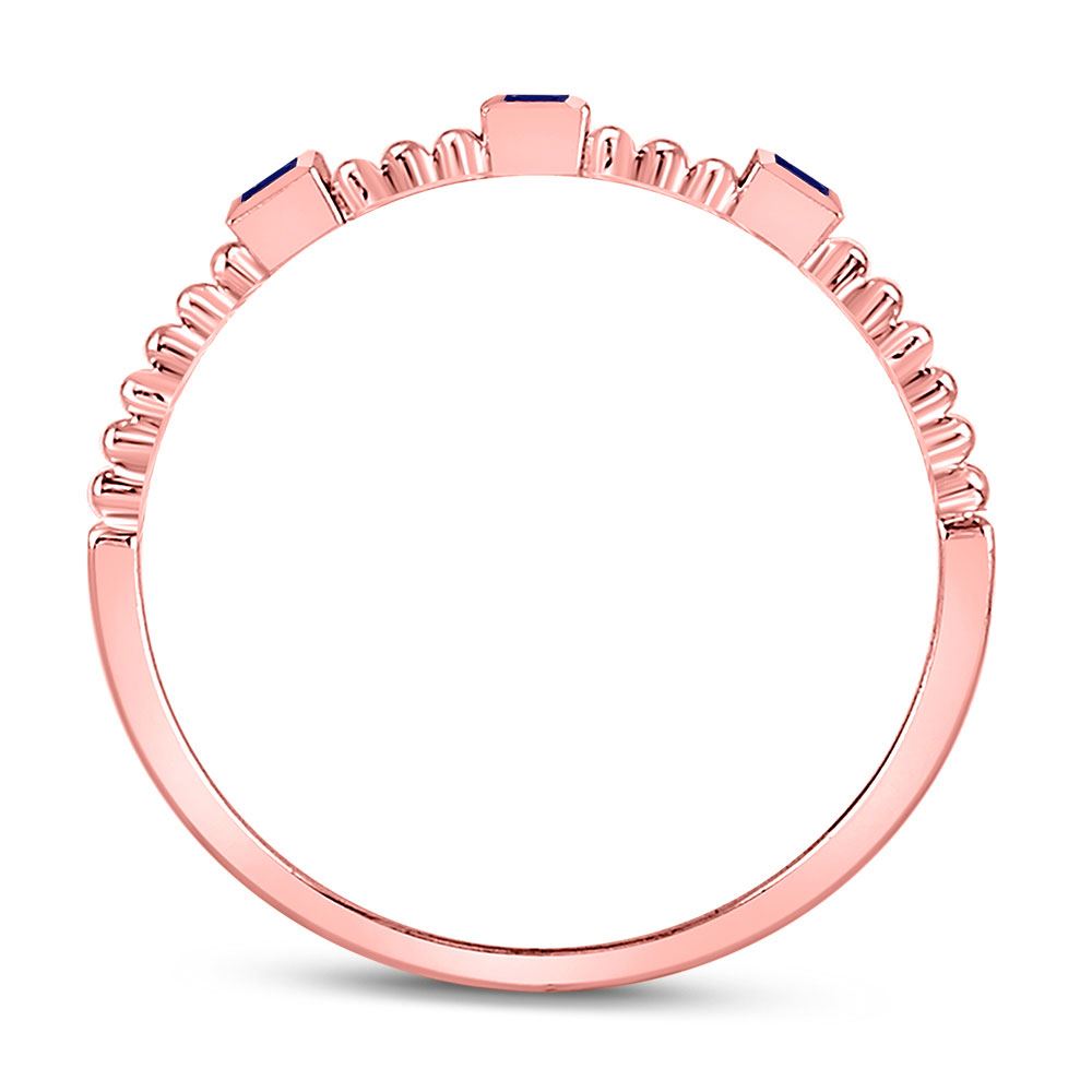 10kt Rose Gold Womens Princess Blue Sapphire 3-Stone Beaded Stackable Band Ring 1/20 Cttw