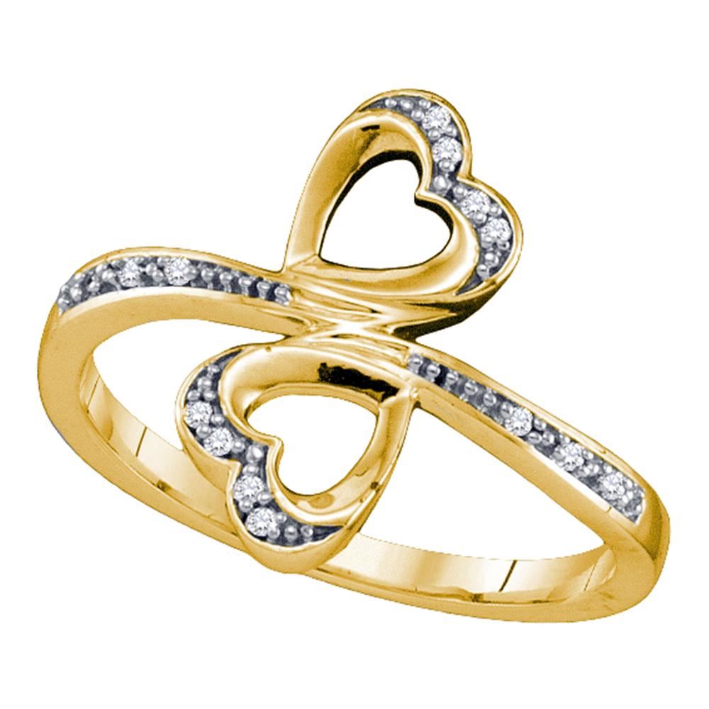 REF-12X2Y- SKU: GD64804 ---- 0.04 CTW Diamond Double Heart Bypass Ring 10KT Yellow Gold