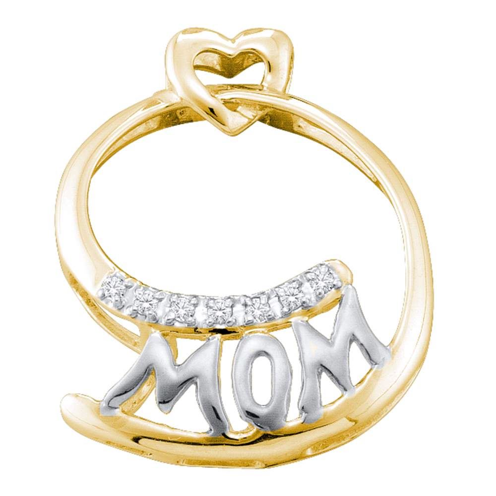 REF-10K5W- SKU: GD52663 ---- 0.04 CTW Diamond Mom Mother Pendant 10KT Yellow Two-tone Gold