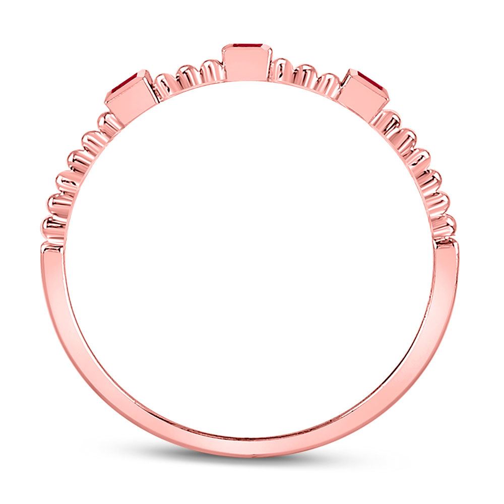 10kt Rose Gold Womens Princess Ruby 3-Stone Beaded Stackable Band Ring 1/20 Cttw