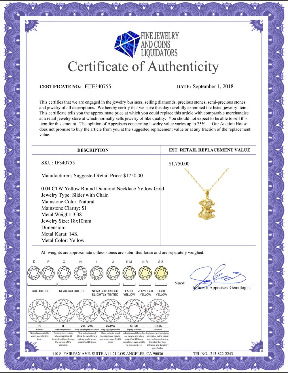REF-21R2K - JF340755 ---- 0.04 CTW Yellow Round Diamond Necklace 14K Yellow Gold
