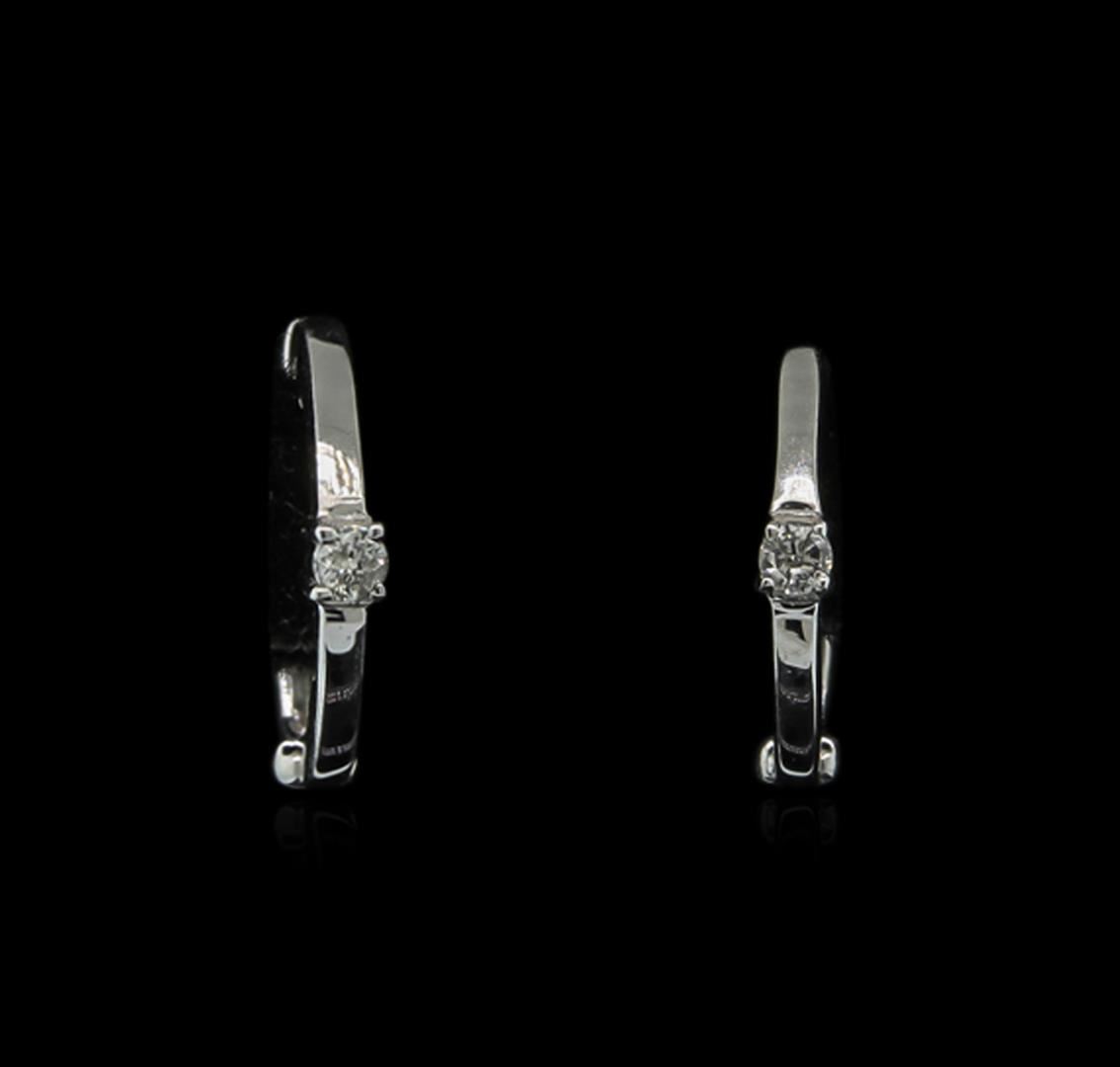 One pair of tiny hoop earrings featuring: 14KT white gold weighing 0.80 grams containing prong set round diamonds with a total weight of 0.04ct.