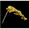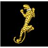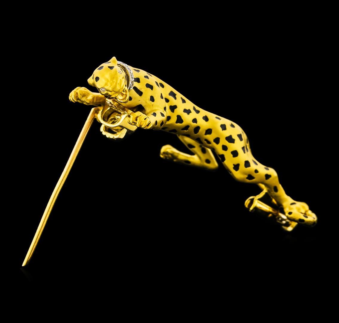 One electronically tested 18KT yellow gold ladies cast & assembled diamond leopard pendant/brooch. The pendant is part of the Bestiario collection by Carrera y Carrera. One and three-quarter inch length pendant/brooch features a climbing gold leopard motif with a diamond collar and diamond accent eyes, completed by a vertically placed pin with safety. The pendant/brooch is supported by a removable twenty-eight inch length 18KT yellow gold designer style chain, terminating in a lobster claw clasp. Trademark is C y C. Identified with markings of "750". Condition is good. Containing: Ten flush set round brilliant cut diamonds, measuring 1.00 - 1.00 x 0.60mm (depth est.) approximate total weight of 10 Stones = 0.04ct. Graded in the setting. Clarity: VS-1 to SI-1. Color: F - H. Carrera y Carrera is a Spanish jewelry designer known for its elegant pieces and daring subject matter. Carrera y Carrera's Bestiario collection portrays the leopard to signify all the strength, wariness and cunningness of its species. Total Weight of Diamonds 0.04ct. Total Weight of Pendant/Brooch 23.51 gm. AIG Appraised at $5,515.00.