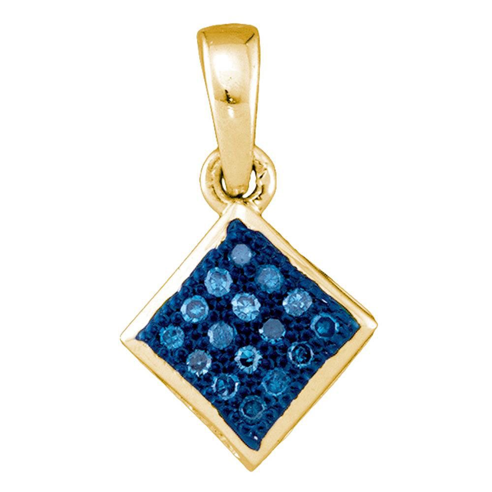 REF-6N2F- SKU: GD81522 ---- 0.05 CTW Blue Color Diamond Square Pendant 10KT Yellow Gold