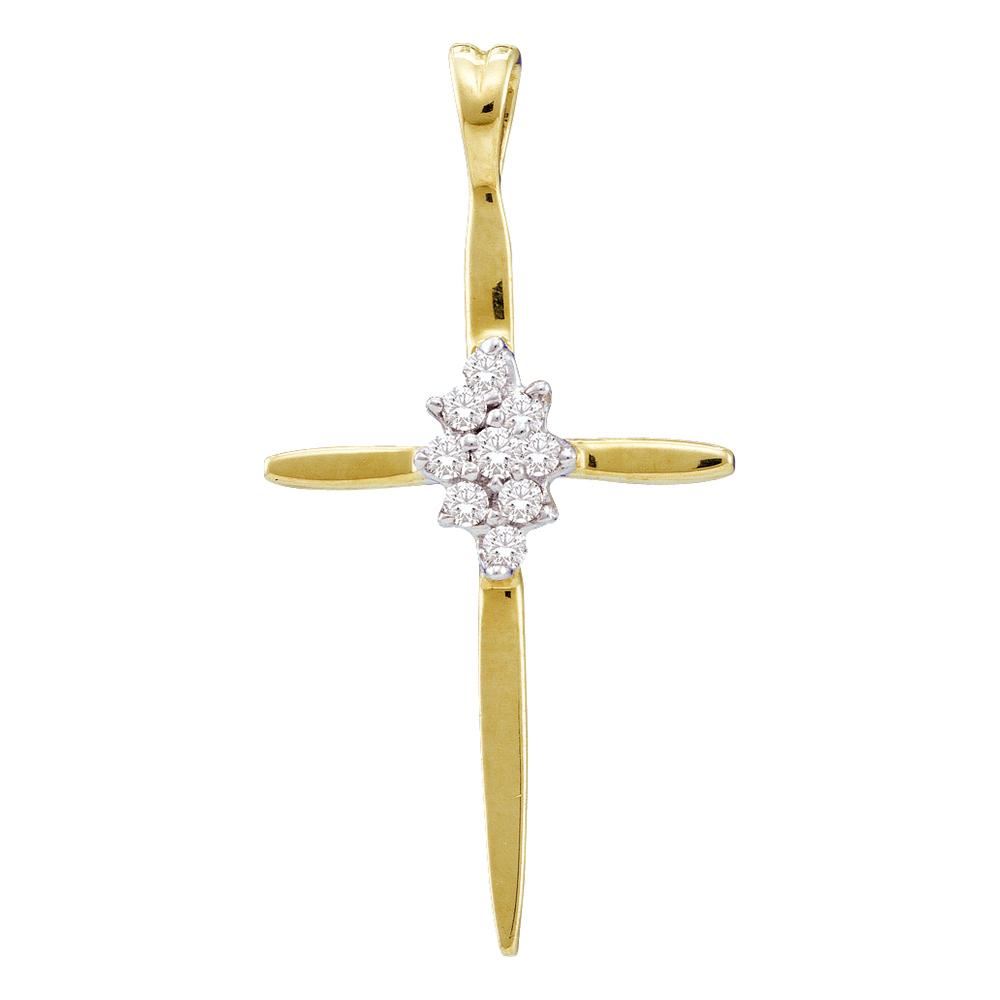 REF-7H4M- SKU: GD15813 ---- 0.05 CTW Diamond Cluster Cross Pendant 10KT Yellow Gold