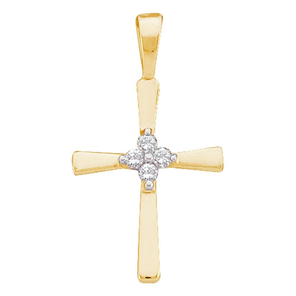 REF-7W4K- SKU: GD20871 ---- 0.05 CTW Diamond Cluster Small Cross Pendant 14KT Yellow Gold