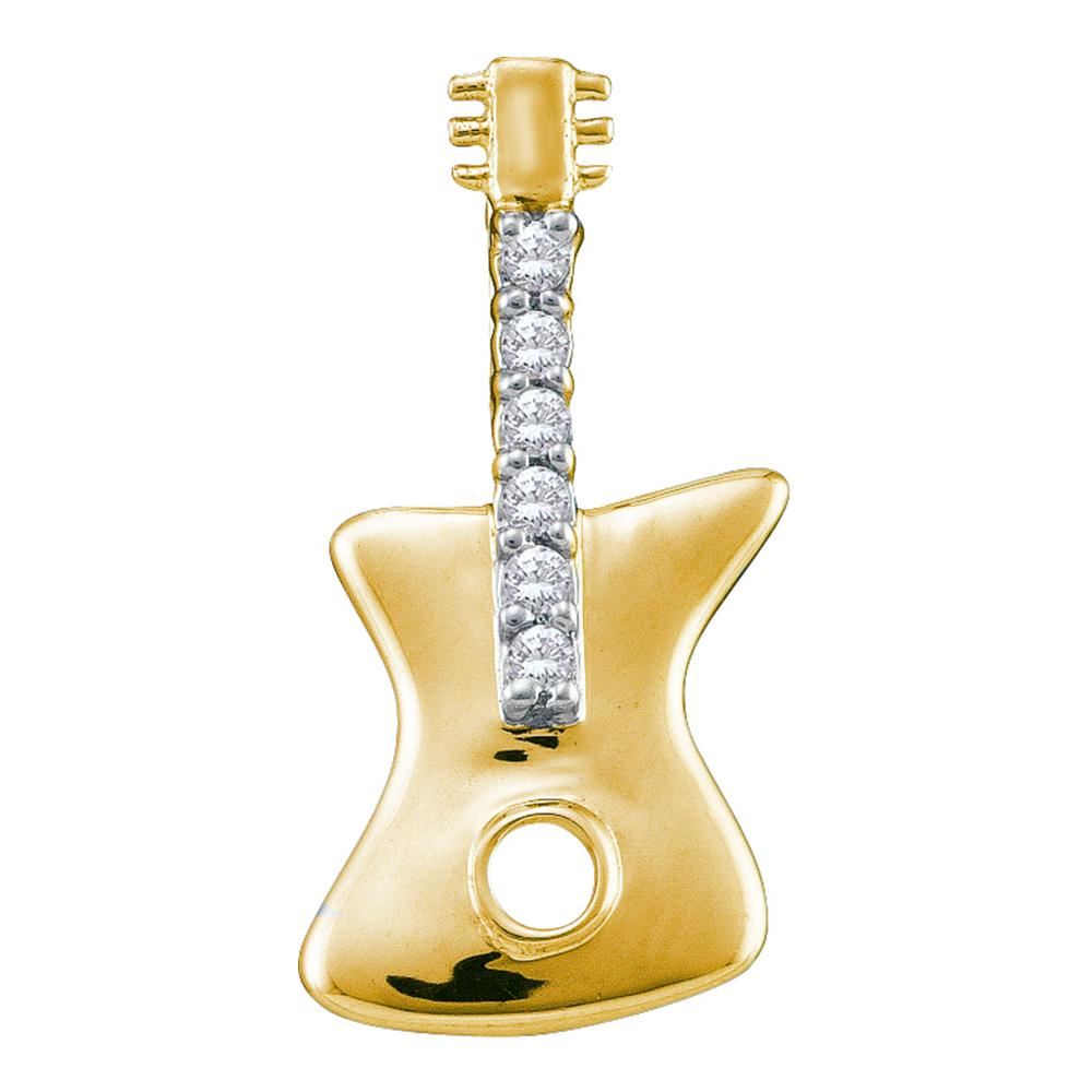 REF-7W4K- SKU: GD58784 ---- 0.05 CTW Diamond Electric Guitar Music Instrument Pendant 10KT Yellow Gold