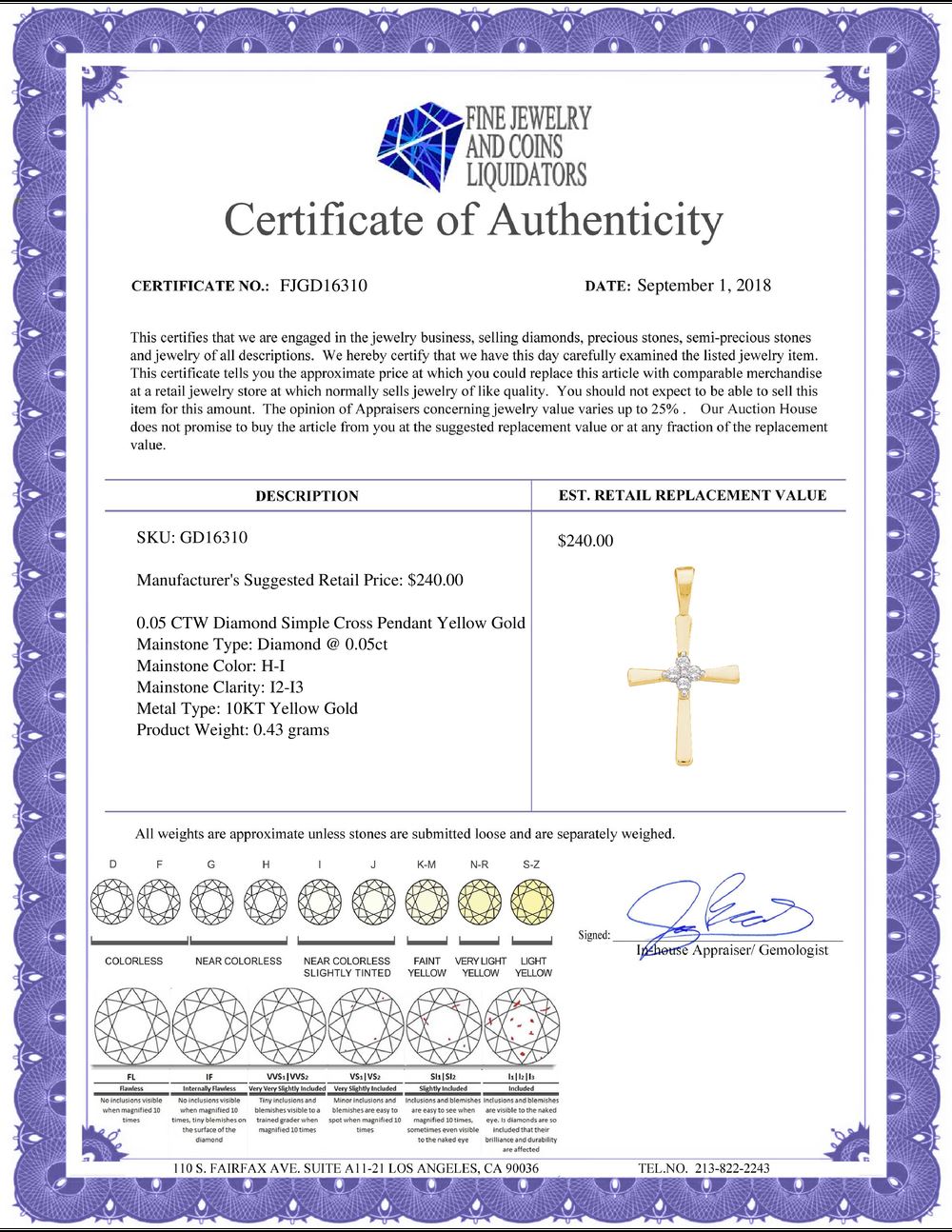 REF-6H2M- SKU: GD16310 ---- 0.05 CTW Diamond Simple Cross Pendant 10KT Yellow Gold