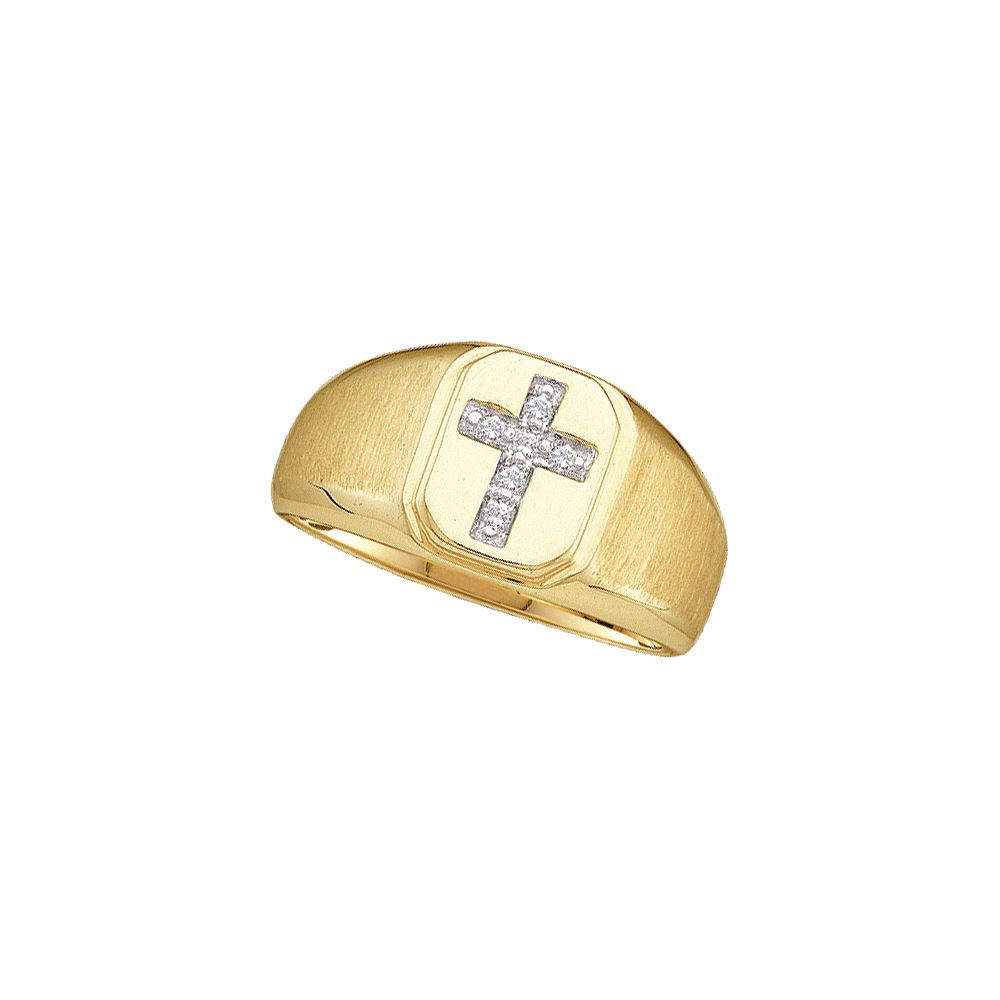 REF-19X9F ---- 0.05 CTW Mens Natural Diamond Christian Cross Brushed Ring 10K Yellow Gold - SKU: GD49755