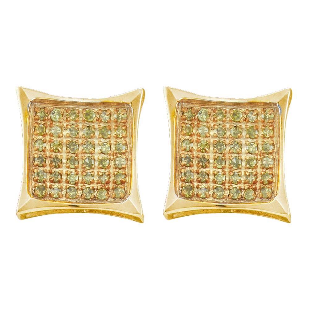 REF-6X2Y- SKU: GD56596 ---- 0.05 CTW Mens Yellow Color Diamond Cluster Square Kite Earrings 10KT Yellow Gold
