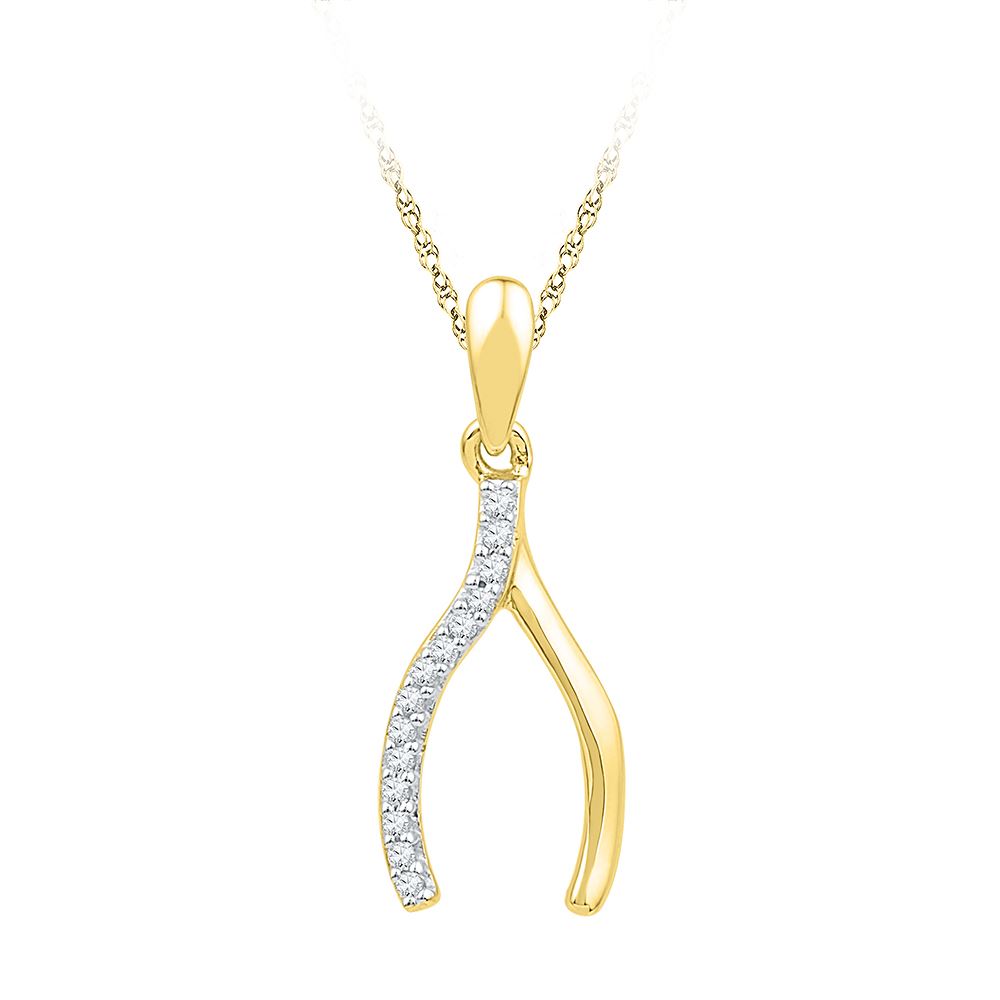 REF-8M2A ---- 0.05 CTW Natural Diamond Wishbone Lucky Fine Prosperity Charm Pendant 10K Yellow Gold - SKU: GD97365
