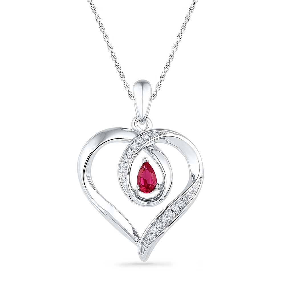 REF-18F2N- SKU: GD100872 ---- 0.05 CTW Pear Created Ruby Diamond Heart Pendant 10KT White Gold