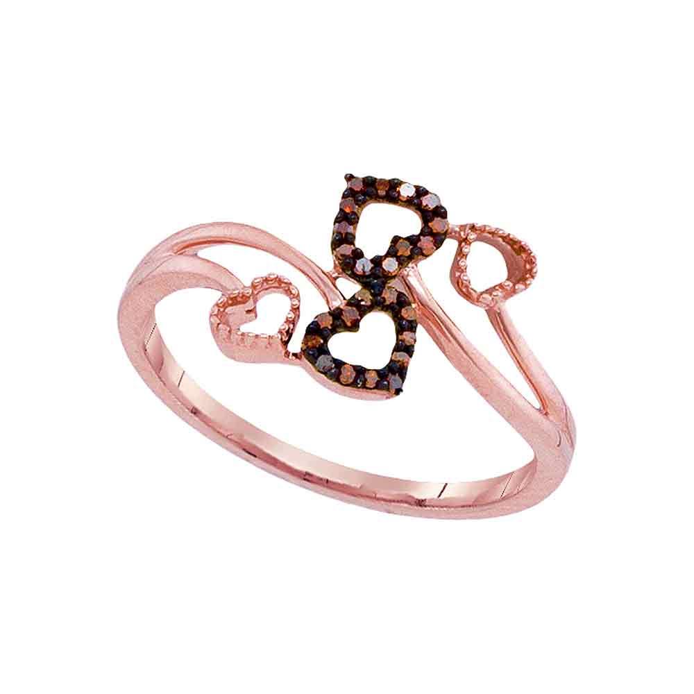 REF-12M2H- SKU: GD93208 ---- 0.05 CTW Red Color Diamond Double Heart Bypass Ring 10KT Rose Gold