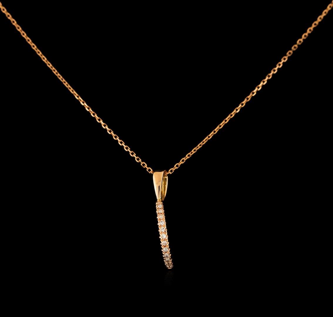 One pendant with chain featuring: 14KT rose gold weighing approximately 1.22 grams containing diamonds with a total weight of 0.05ct.