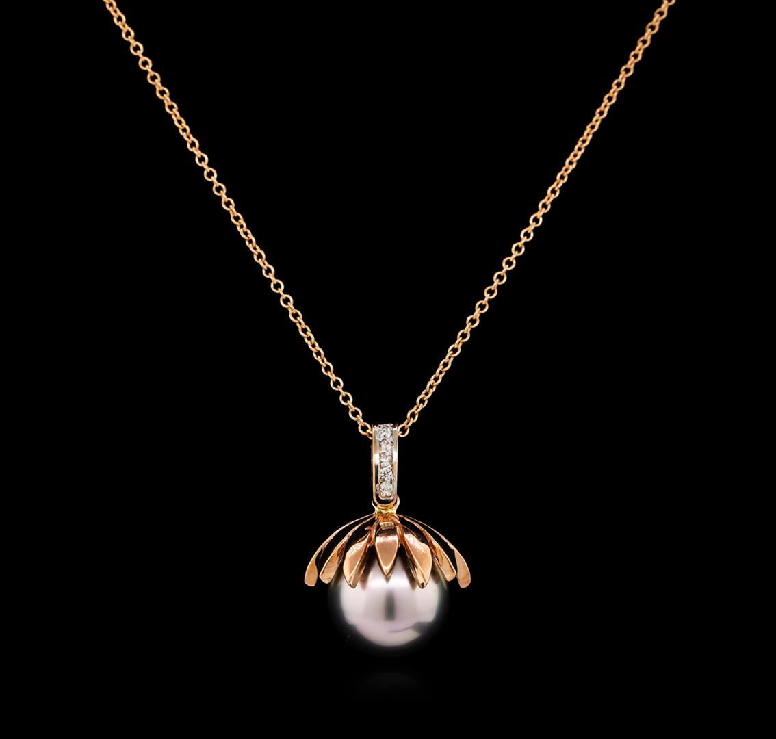 One pendant featuring: 14KT rose gold weighing 3.60 grams containing one pearl and side diamonds with a total weight of 0.05ct.