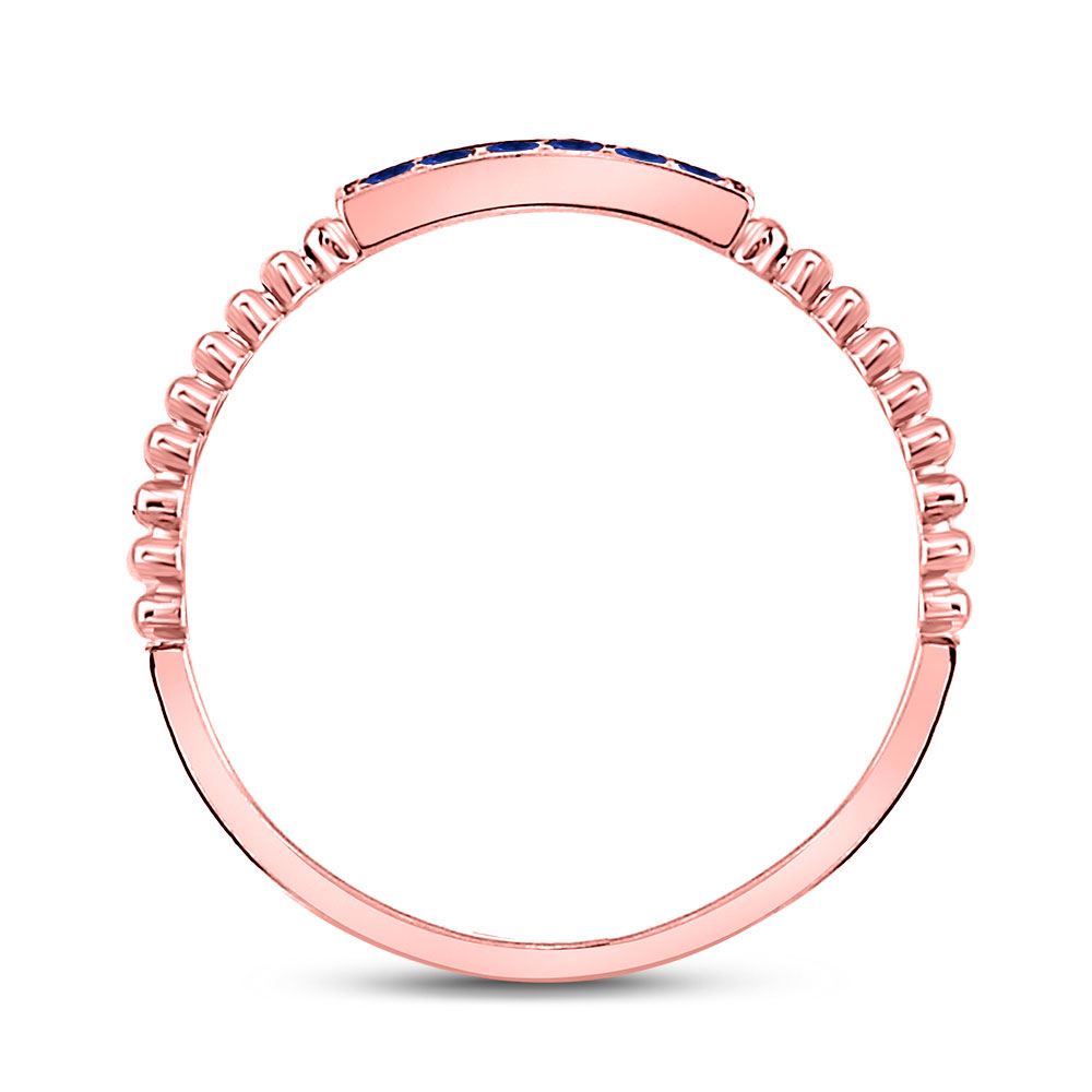 10kt Rose Gold Womens Round Blue Sapphire Beaded Stackable Band Ring 1/20 Cttw