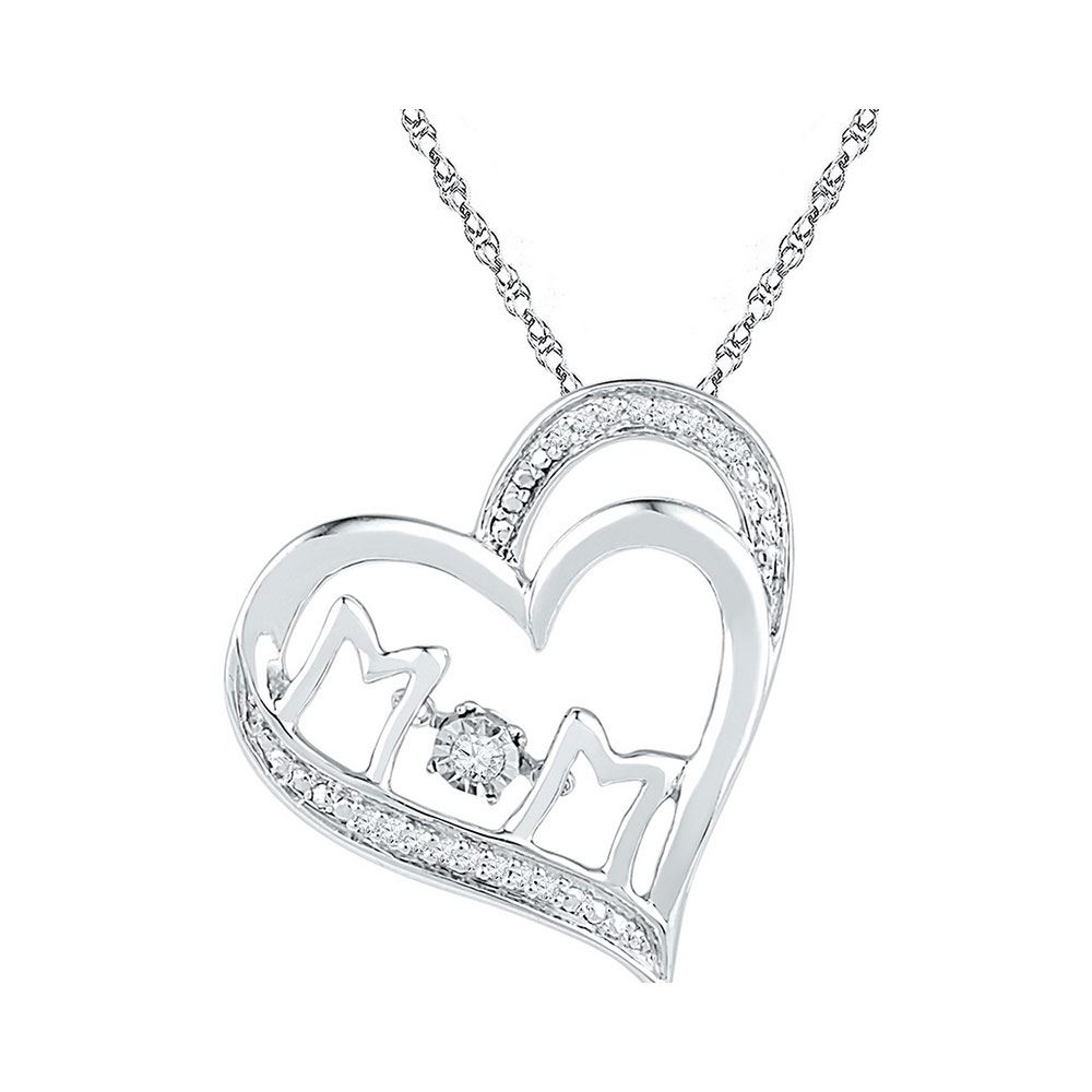 REF-20W9K- SKU: GD108651 ---- 0.06 CTW Diamond Mom Heart Pendant 10KT White Gold