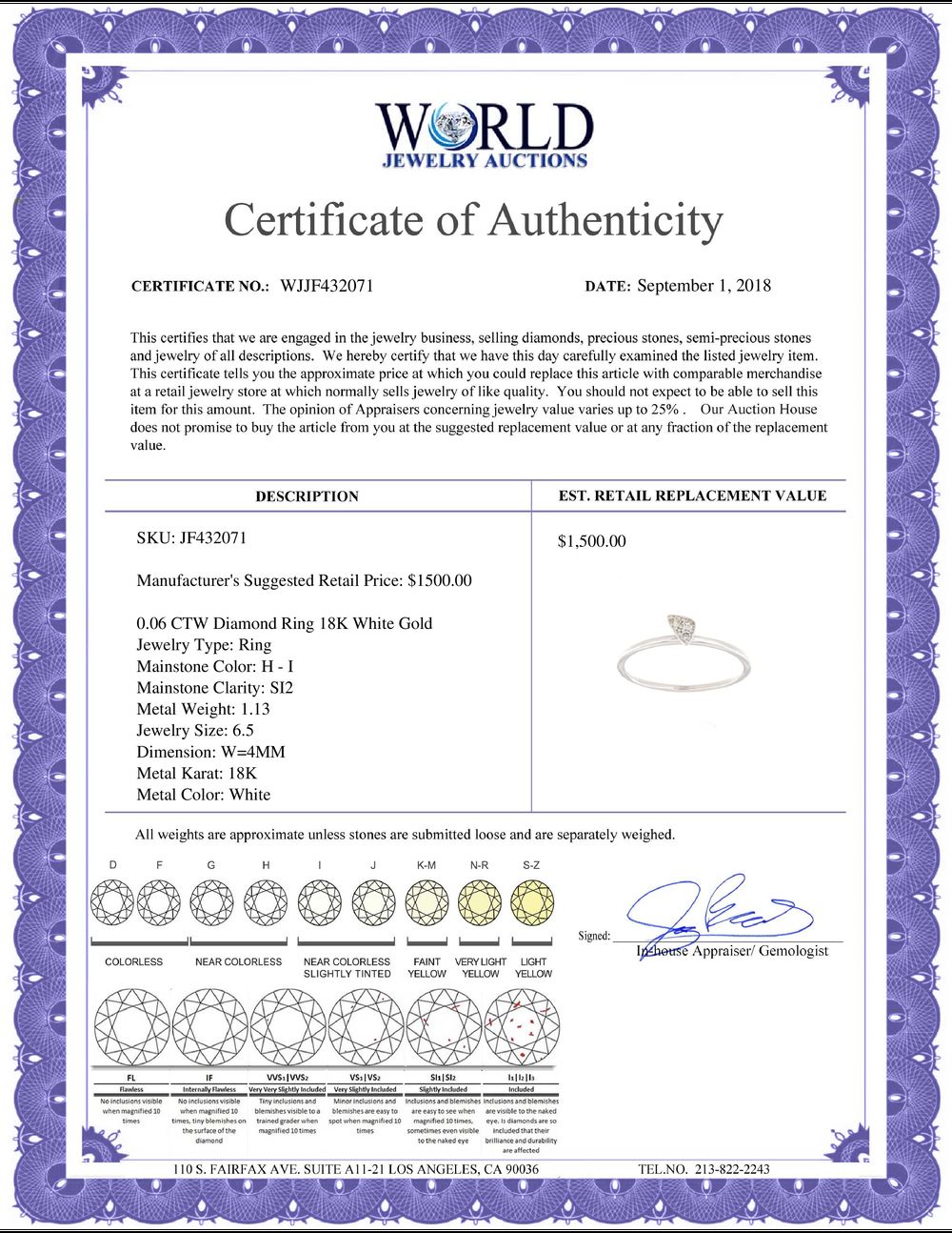 WORLD JEWELRY AUCTION believes to the best of its knowledge that the information presented in any listing has come from reliable sources. Such information is presented solely for the convenience of the Purchaser. WJA makes no warranties of any kind related to the information presented in any listing. WJA further makes no warranties, either express or implied, relating to the value, marketability or condition of the lot described in any listing. Prospective bidders should investigate a lot thoroughly before bidding. By bidding the Bidder acknowledges that Bidder has investigated the lot to his or her satisfaction, or, that Bidder has chosen not to do so, and agrees to accept the lot being bid on with no objections after the sale closes. If you are uncertain please contact us with your questions prior to bidding. If you are still uncertain after we reply, please refrain from bidding. Photos other graphic material contained in any listing of generic or duplicate lots may be stock presentations and not necessarily of the specific lot.