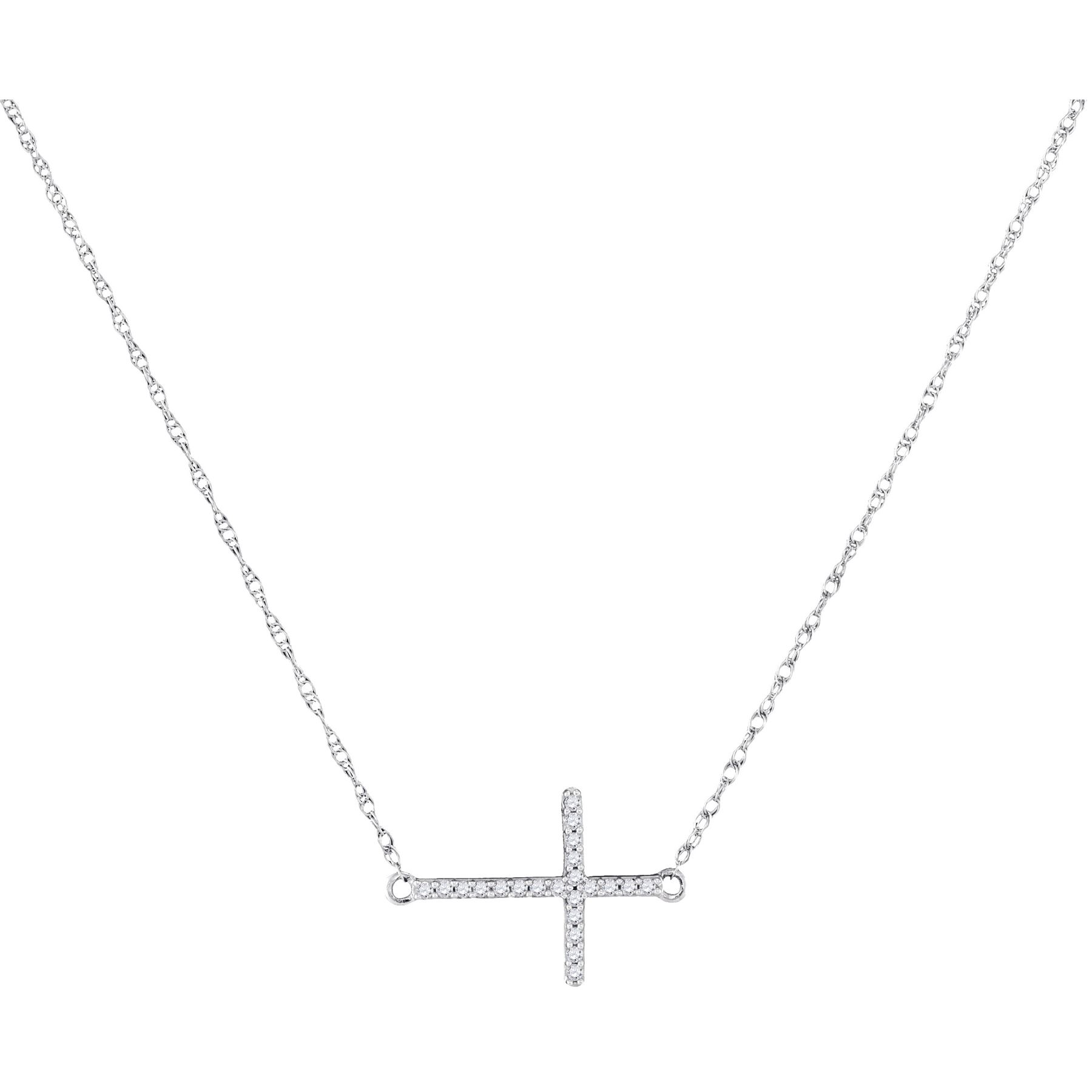 REF-8F9N- SKU: GD98623 ---- 0.06 CTW Diamond Sideways Horizontal Cross Pendant 10KT White Gold