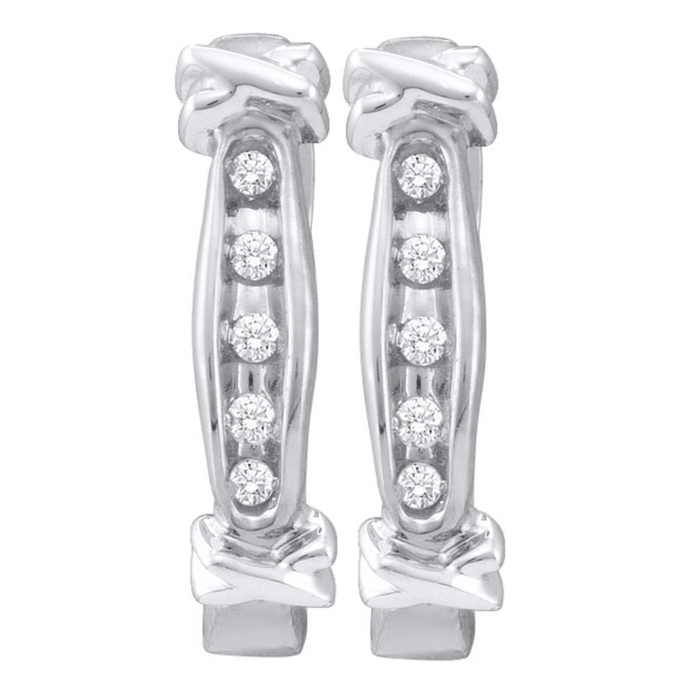 REF-16F4N- SKU: GD15851 ---- 0.06 CTW Diamond Single Row Hoop Earrings 10KT White Gold
