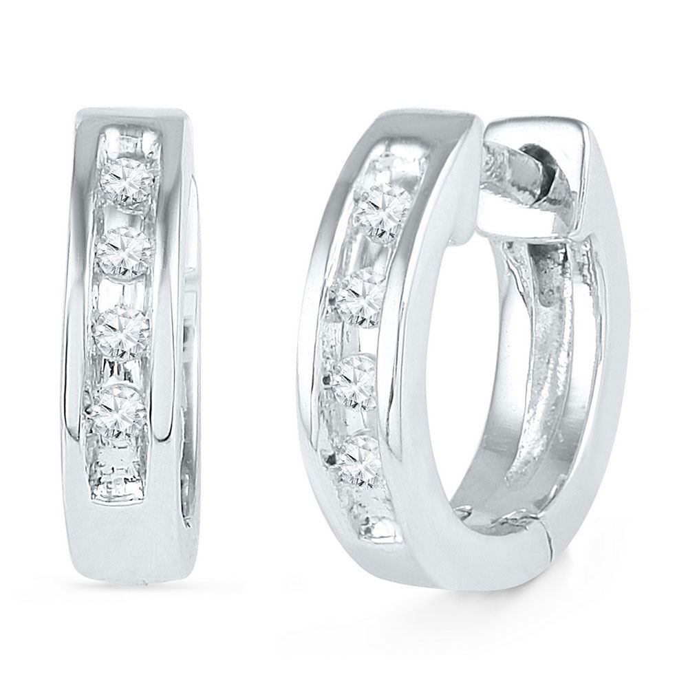 REF-10X5Y- SKU: GD101938 ---- 0.06 CTW Diamond Single Row Huggie Earrings 10KT White Gold
