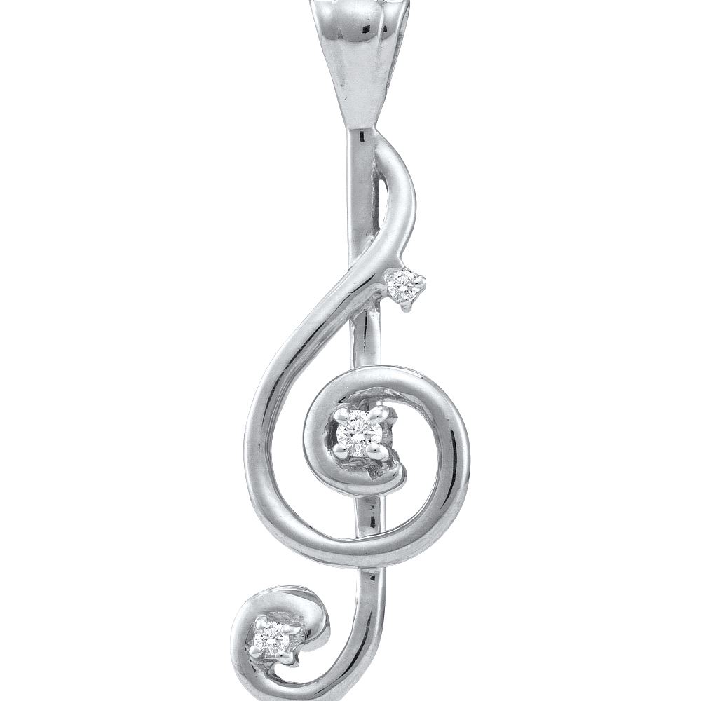 REF-12A9N ---- 0.06 CTW Natural Diamond Treble Clef Music Note Pendant 10K White Gold - SKU: GD48363