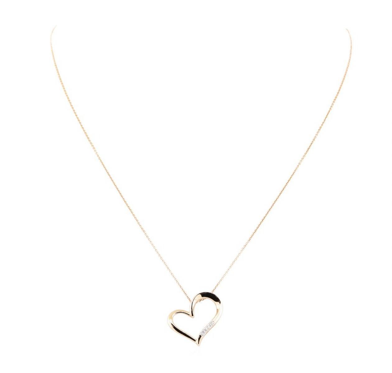One heart shaped pendant with an attached eighteen inch long cable link chain featuring: 14KT rose gold weighing 3.4 grams containing diamonds weighing 0.06ctw.