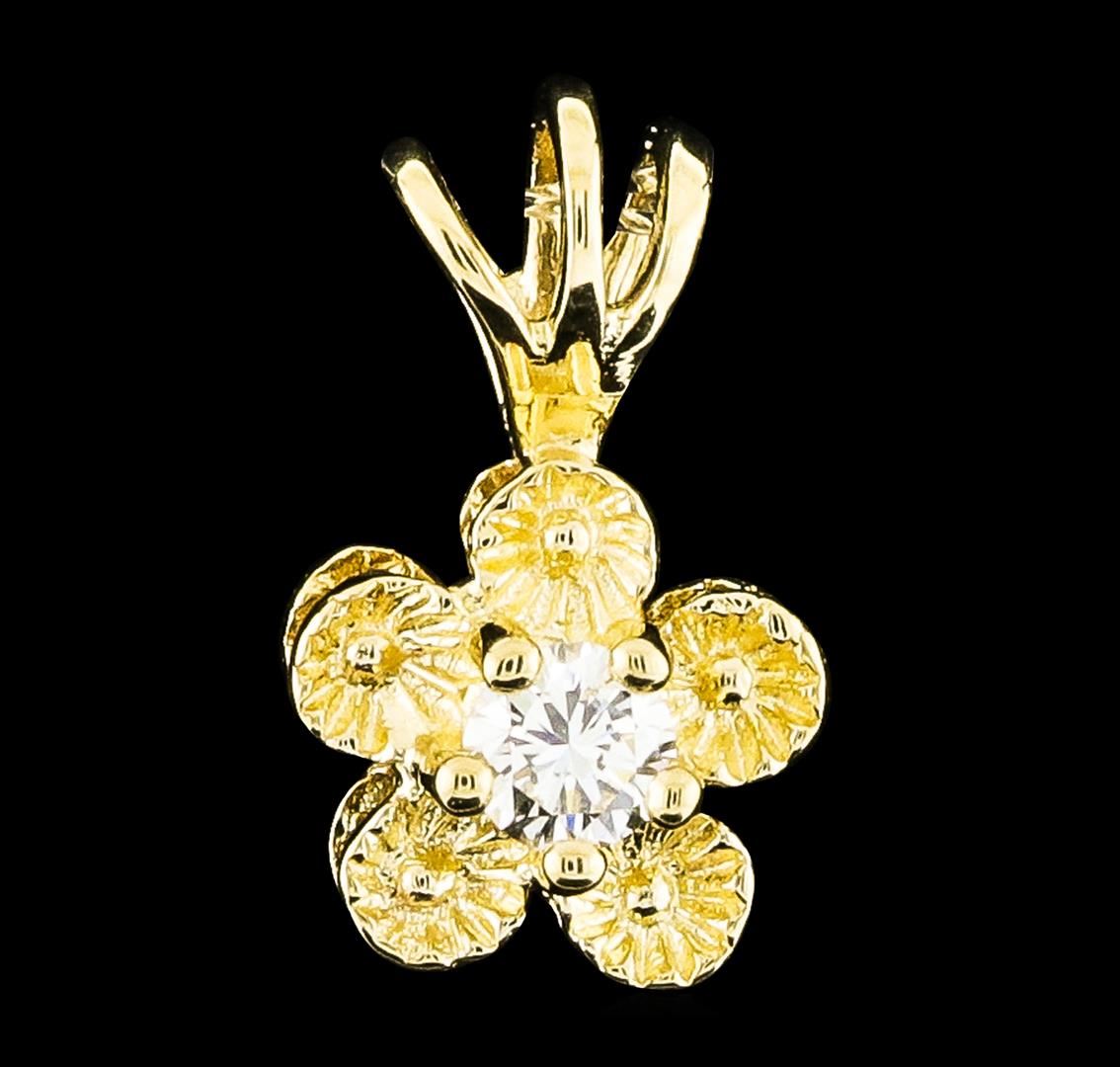 One Diamond Pendant featuring: 14KT Yellow Gold with a total weight of 0.90 grams and diamonds with a total weight of 0.06ctw.
