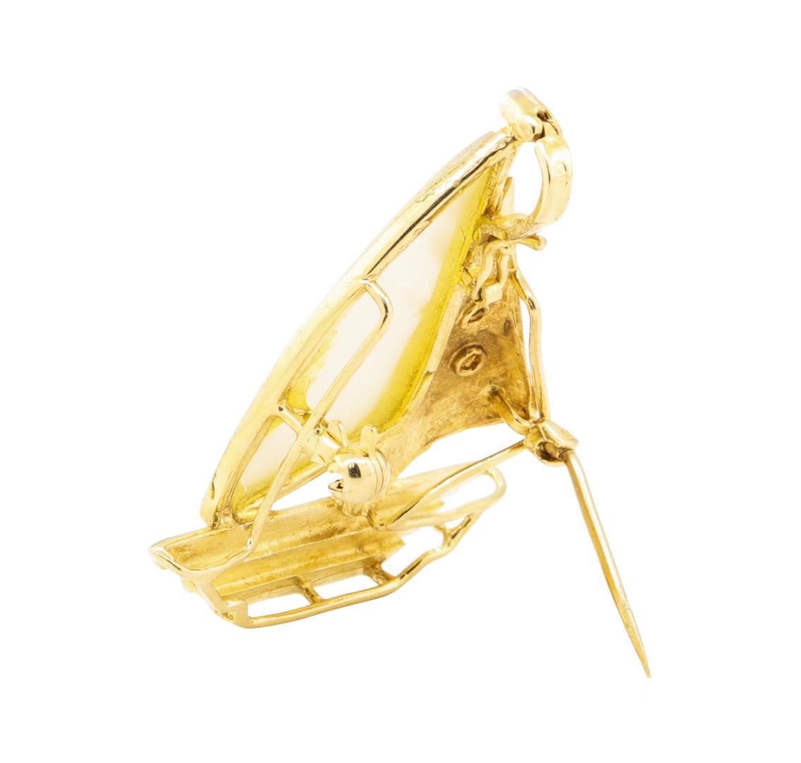 0.06 ctw Diamond and Mother of Pearl Boat Enhancer/Pin - 14KT Yellow Gold