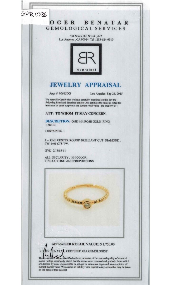 14K ROSE GOLD NATURAL DIAMOND RING:1.58 GRAMS/DIAMOND:0.06CT//#GVR1086