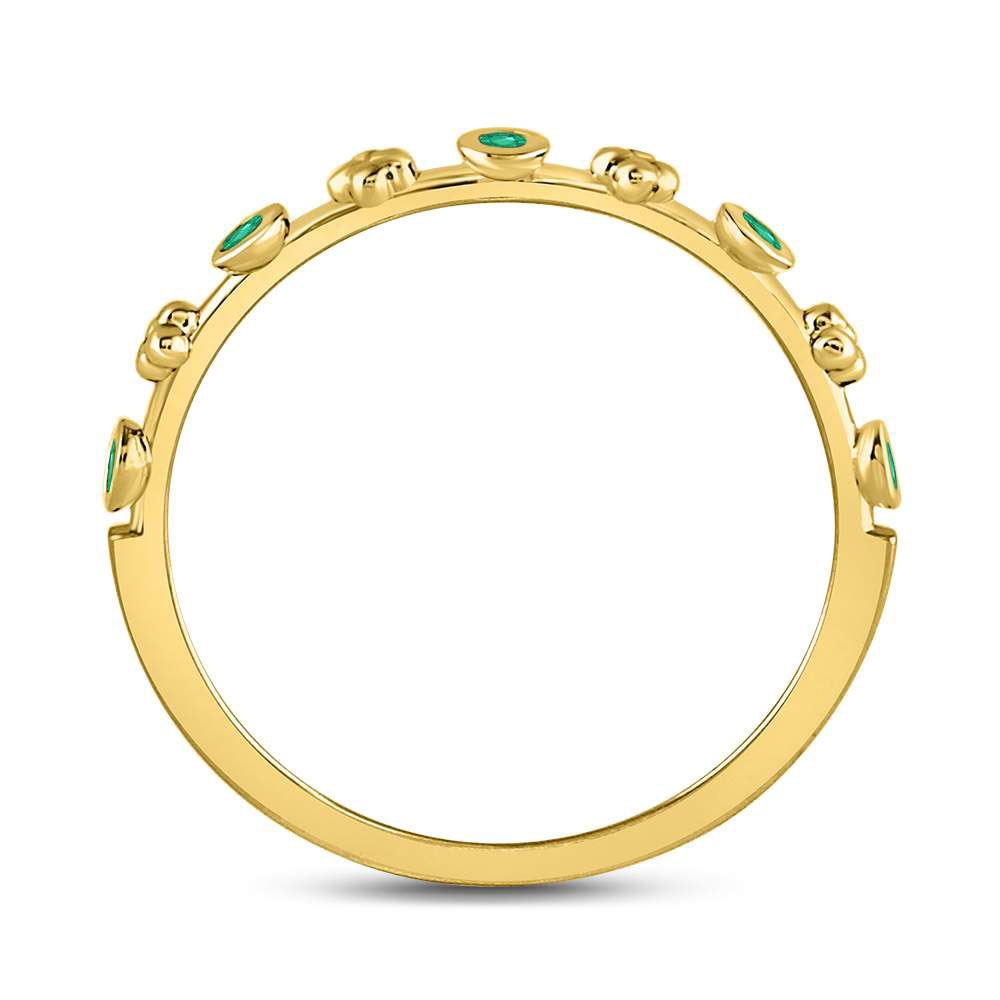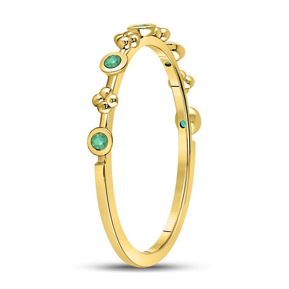 10kt Yellow Gold Womens Round Emerald Dot Flower Stackable Band Ring 1/12 Cttw
