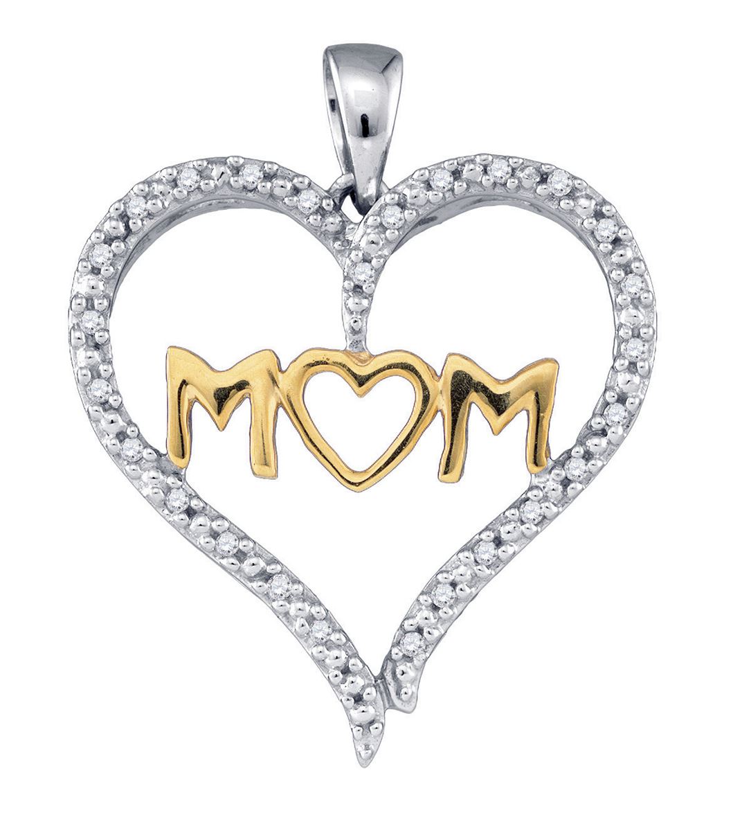 REF-19A9N ---- 0.07 CTW Natural Diamond Mom Mother Heart Pendant 10K Multi-Tone Gold - SKU: GD77030
