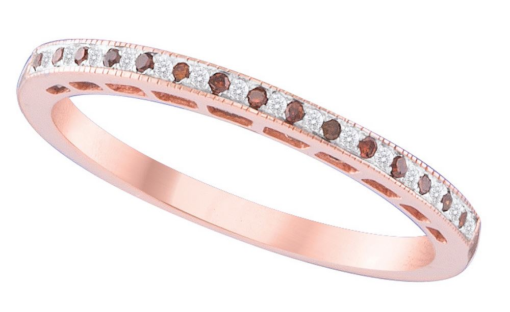 REF-17A9N ---- 0.07 CTW Red Colored Diamond Slender Band 10K Rose Gold - SKU: GD110166