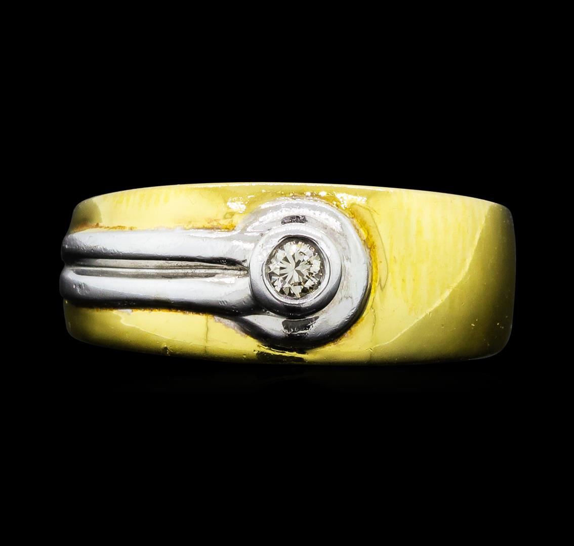 One lady's ring featuring: 18KT white and yellow gold weighing 7.8 grams containing one diamond weighing 0.06ct.