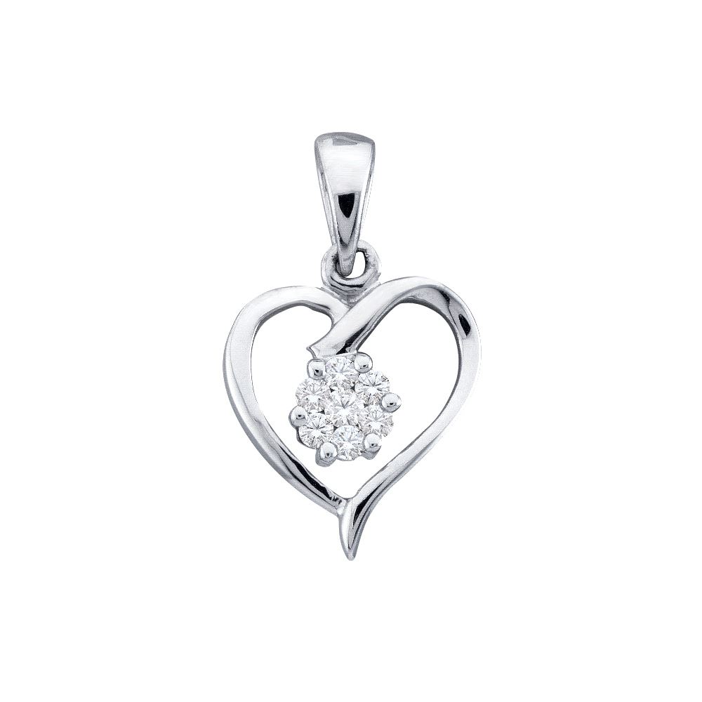 REF-10M5H- SKU: GD12925 ---- 0.08 CTW Diamond Flower Cluster Heart Pendant 10KT White Gold