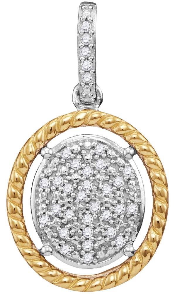 REF-14X9Y- SKU: GD115831 ---- 0.08 CTW Diamond Oval Cluster Yellow-tone Rope Pendant 10KT Two-tone Gold