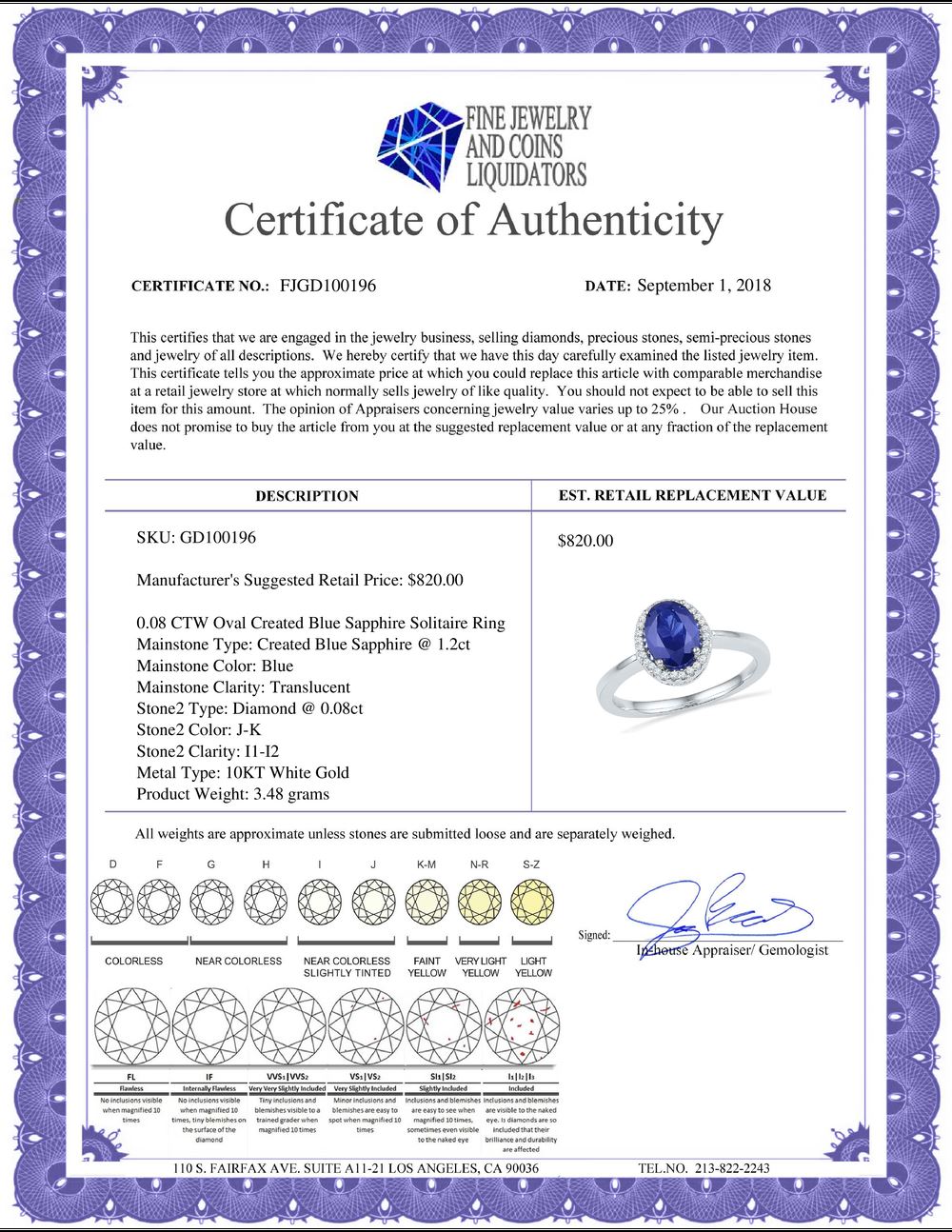 REF-20X9Y- SKU: GD100196 ---- 0.08 CTW Oval Created Blue Sapphire Solitaire Ring 10KT White Gold